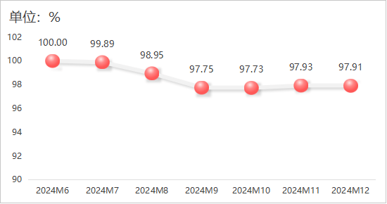 2024年12月,花出产品价钱指数维稳运转,指数值为97。91点,较11月下降0。02个百分点。具体运转环境如下图所示。